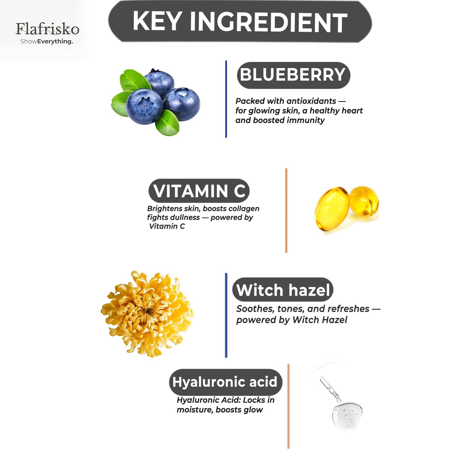 Complementing the powerful antioxidants are witch hazel and hyaluronic acid—two skincare heroes that ensure your skin stays refreshed and hydrated. Witch hazel helps clear and tighten pores, reducing the appearance of blemishes, while hyaluronic acid deeply moisturizes, keeping your skin soft, supple, and rejuvenated after every wash.